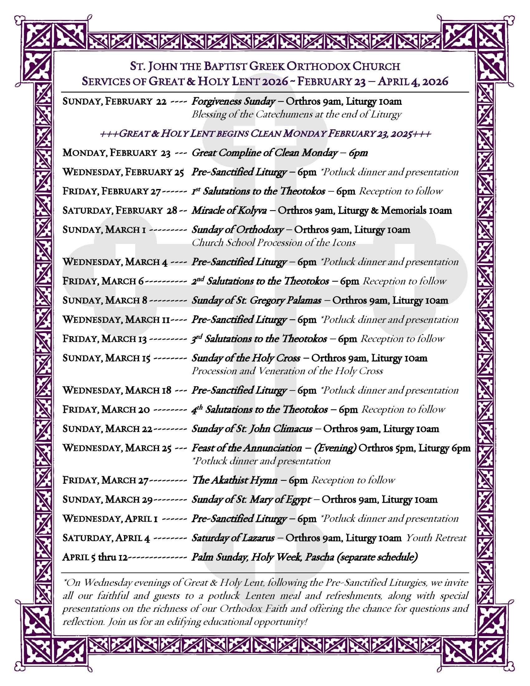 - Wednesday Evening Paraklesis (Supplication service) - 6pm